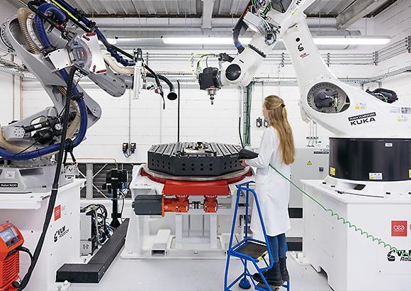 Prisma est composée de deux robots : le premier utilise le procédé arc-fil (WAAM) idéal pour fabriquer de grandes pièces, tandis que le deuxième permet d’usiner et d’assurer les finitions de la pièce mais aussi d’embarquer différents capteurs qui assurent le monitoring du procédé ou le contrôle des pièces. La plateforme combine simulation numérique et instrumentation en ligne pour détecter les défauts dès leur apparition lors de la fabrication. Une décision est alors prise en temps réel de poursuivre ou interrompre la fabrication, ou encore simplement d’annoter le défaut (position, nature, taille, etc.) pour une décision ou un traitement différé.